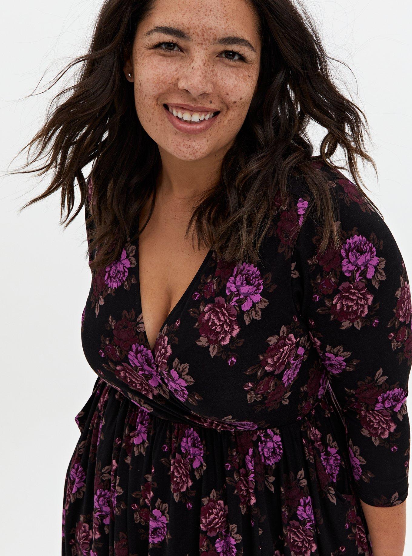 Plus Size Super Soft Black Purple Floral Surplice Skater Dress Torrid Very well made.