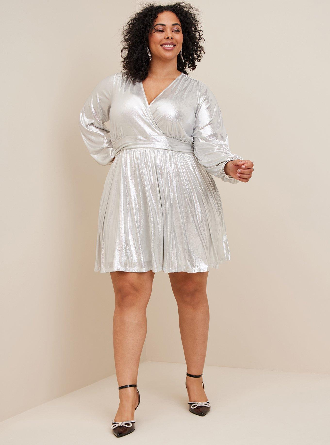 Plus Size Silver Metallic Shimmer Ribbed Knit Trapeze Dress Torrid Very well made.