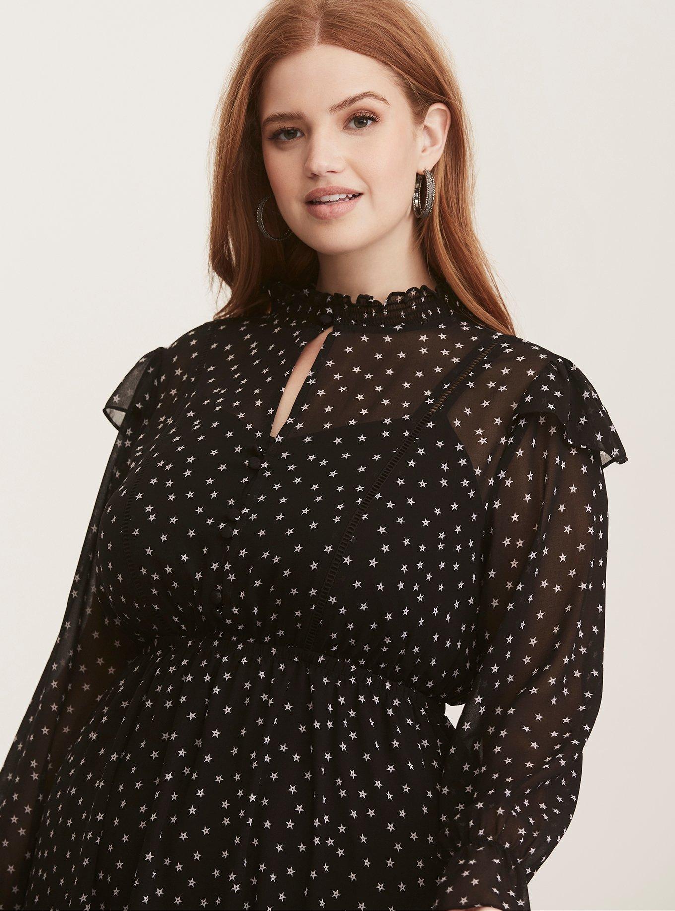 Plus Size Black Star Chiffon Ruffle Midi Dress Torrid Very well made.