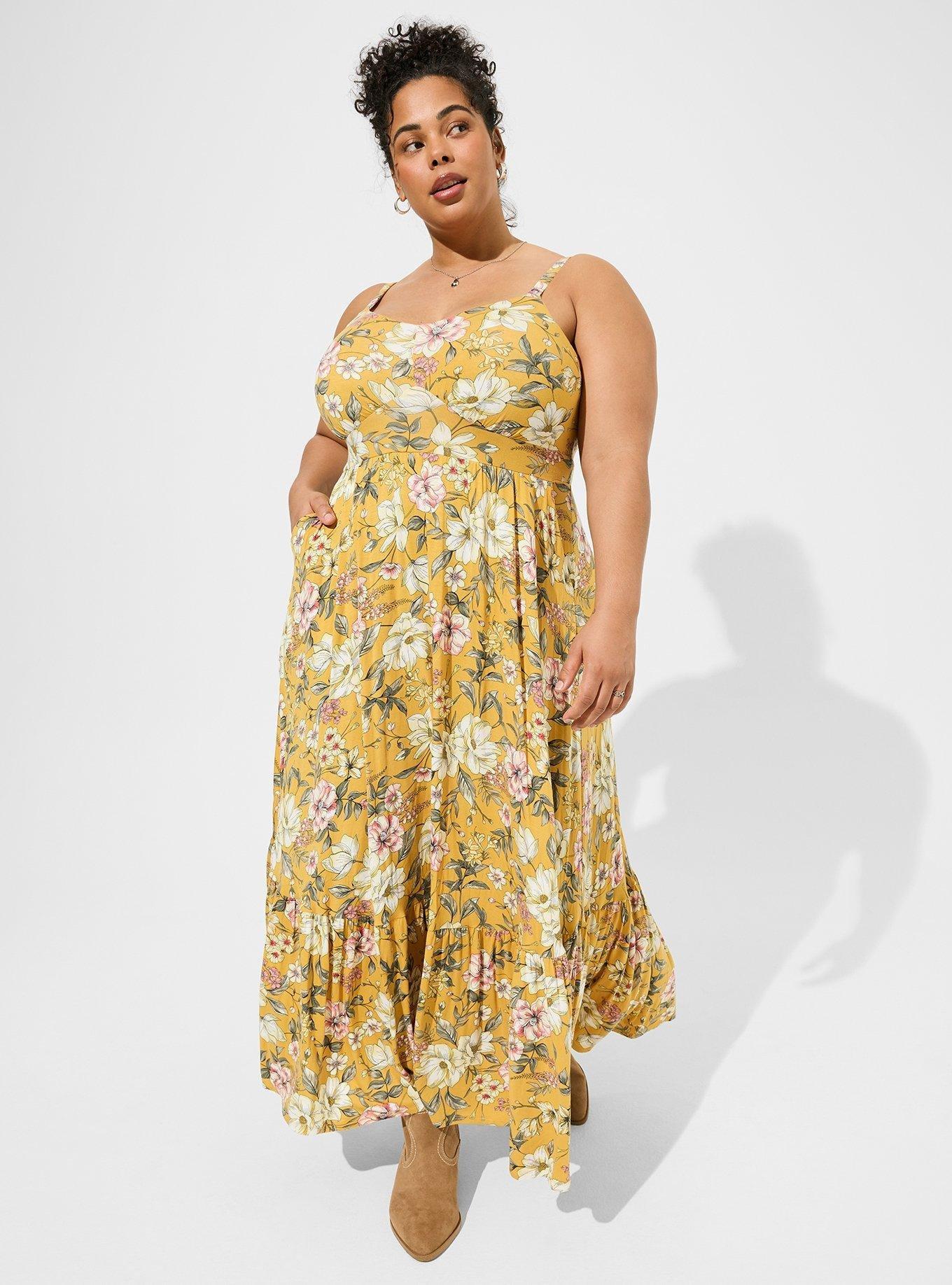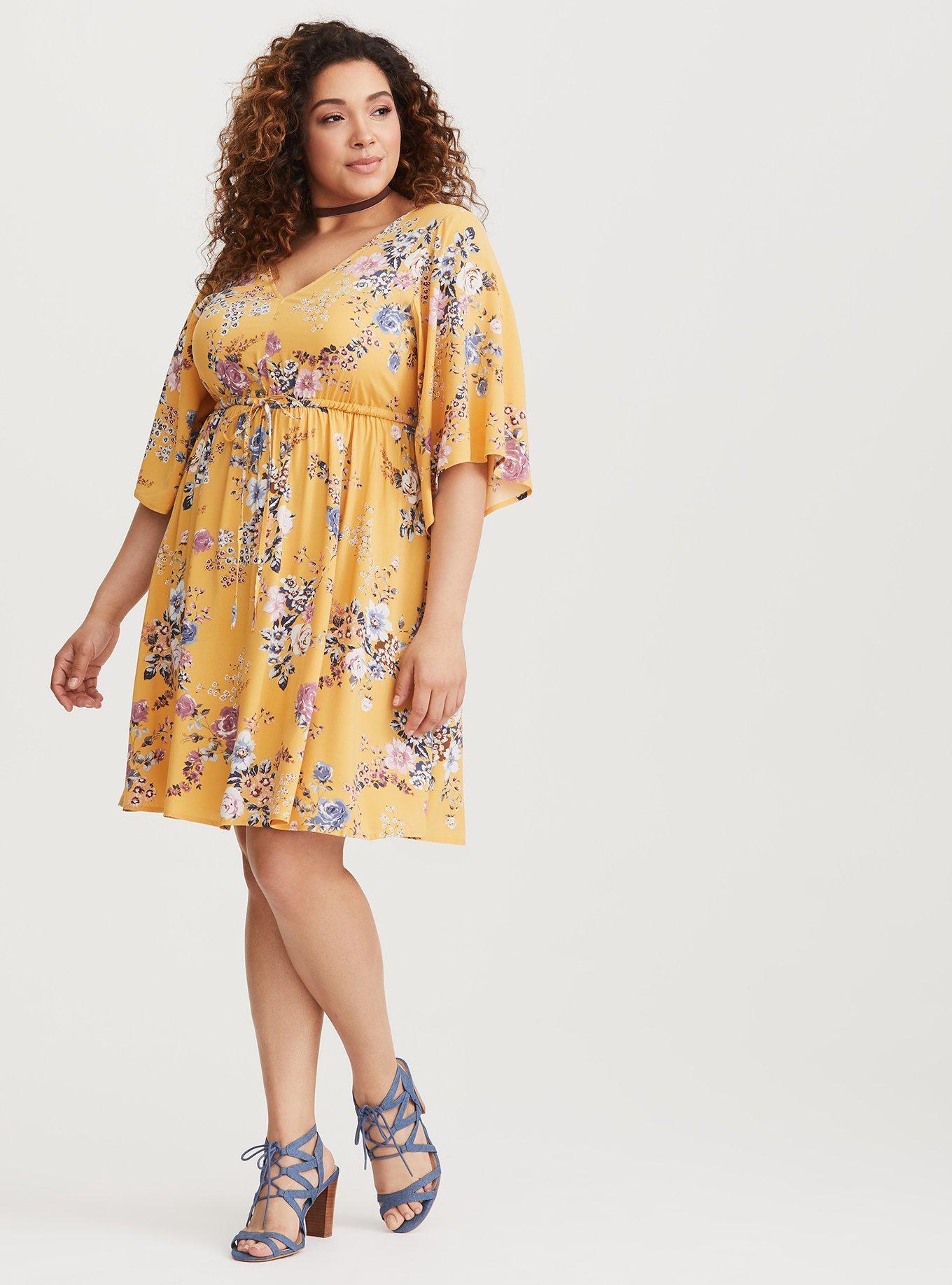 Plus Size Babydoll Dress Stretch Challis Floral Yellow Torrid Very well made.