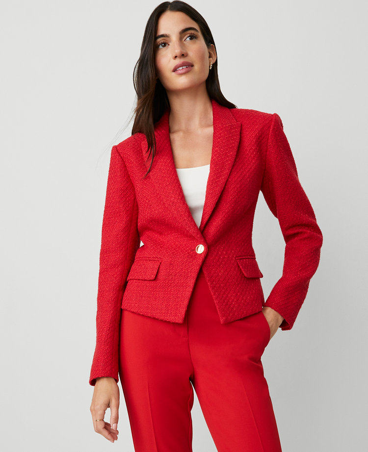 Ann Taylor Tweed Fitted Blazer Size 14 Iconic Red Women s Very well made.