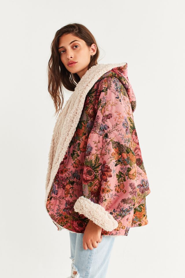 Beige Vintage Paisley Floral Printed Sherpa Lined Hooded Jacket Majestic Boutique Very well made.
