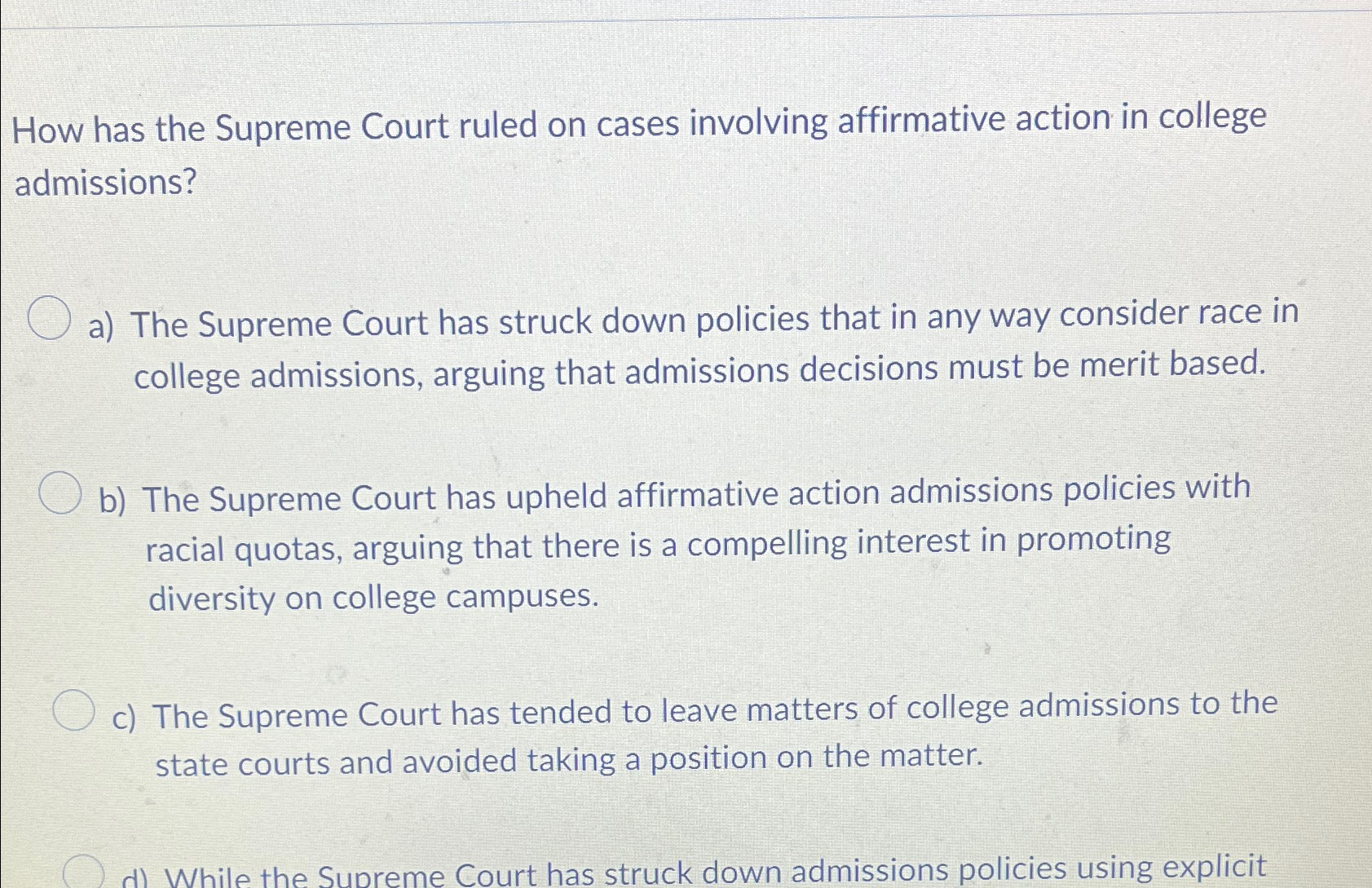 Solved How has the Supreme Court ruled on cases involving Chegg Very well made.
