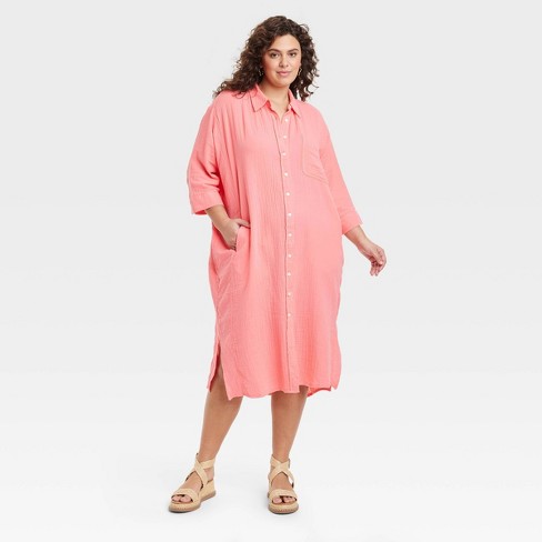 Women s 3 4 Sleeve Midi Shirtdress Universal Thread Coral Pink Xxl Target Very well made.