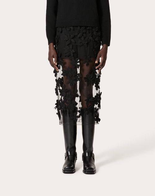 Valentino Tulle Illusione Embroidered Midi Skirt Woman Black 38 Very well made.