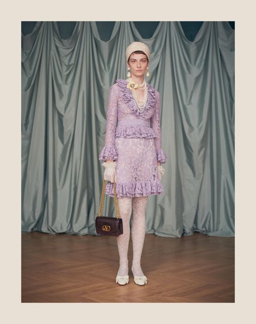 Valentino Short Dress in Heavy Lace Woman Lavender 38 Very well made.