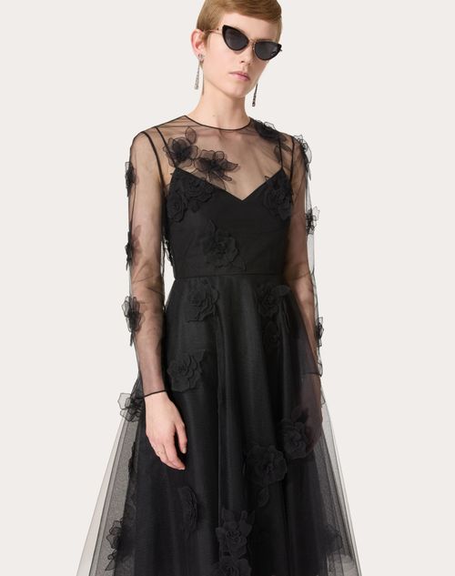 Valentino Tulle Illusione Embroidered Dress Woman Black 40 Very well made.