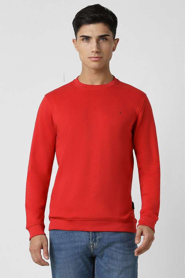 Buy VAN HEUSEN SPORT Red Solid Polyester Cotton Regular Fit Men s Sweatshirt Shoppers Stop Very well made.