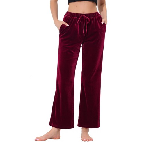 cheibear Women s Velvet Elastic Waist Lounge Ankle Wide Leg Pajama Pants Red X Small Very well made.