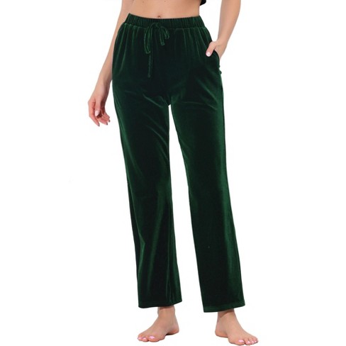 cheibear Women s Velvet Elastic Waist Lounge Ankle Wide Leg Pajama Pants Green X Small Very well made.