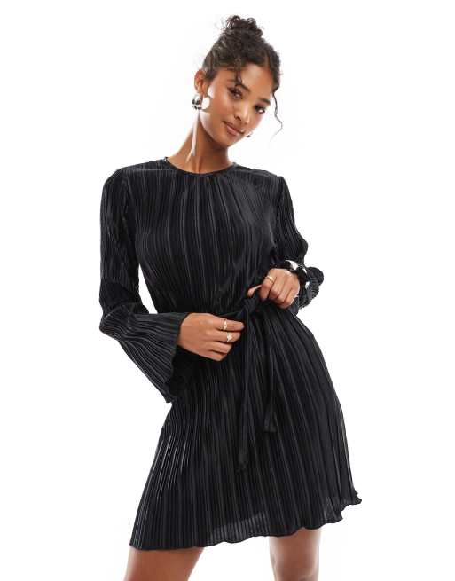 Vero Moda Tie Waist Plisse Mini Dress in Black Very well made.