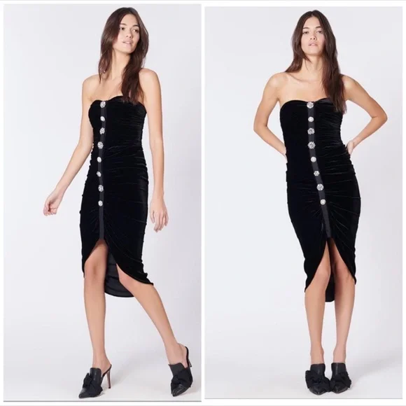 Veronica Beard Palo Strapless Ruched Velvet Button Front Midi Cocktail Dress 0 eBay Very well made.