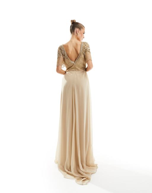 Virgos Lounge raina maxi dress in beige with gold embellishment Very well made.