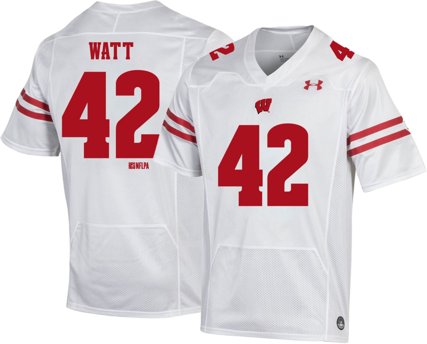 Under Armour Youth Wisconsin Badgers T.J. Watt 42 White Replica Football Jersey Dick s Sporting Goods Very well made.
