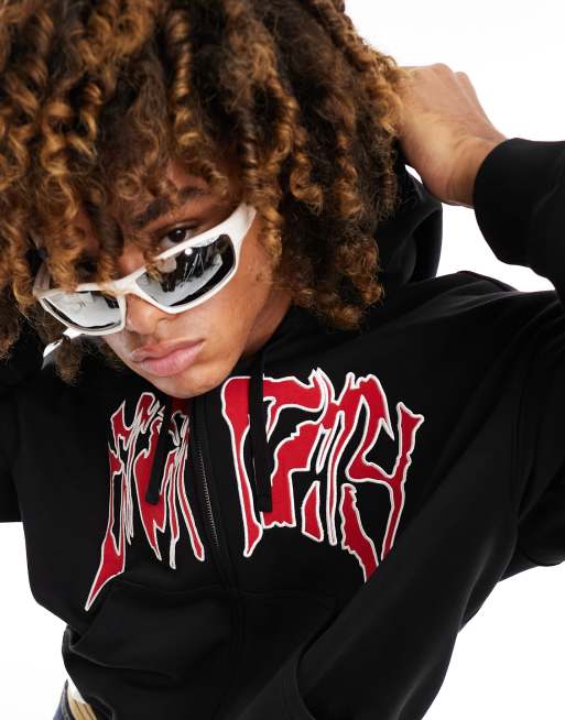 Weekday regular fit zip through hoodie with embroidery graphic in black ASOS Very well made.