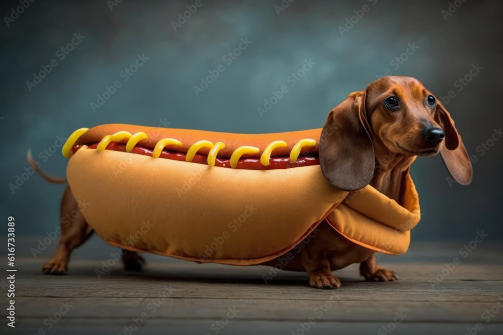 Weiner dog in 2025 a hot dog costume Very well made.