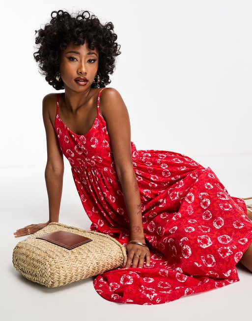 Whistles Maxi Tragerkleid in Rot mit Blumenprint in Batik Optik ASOS Very well made.