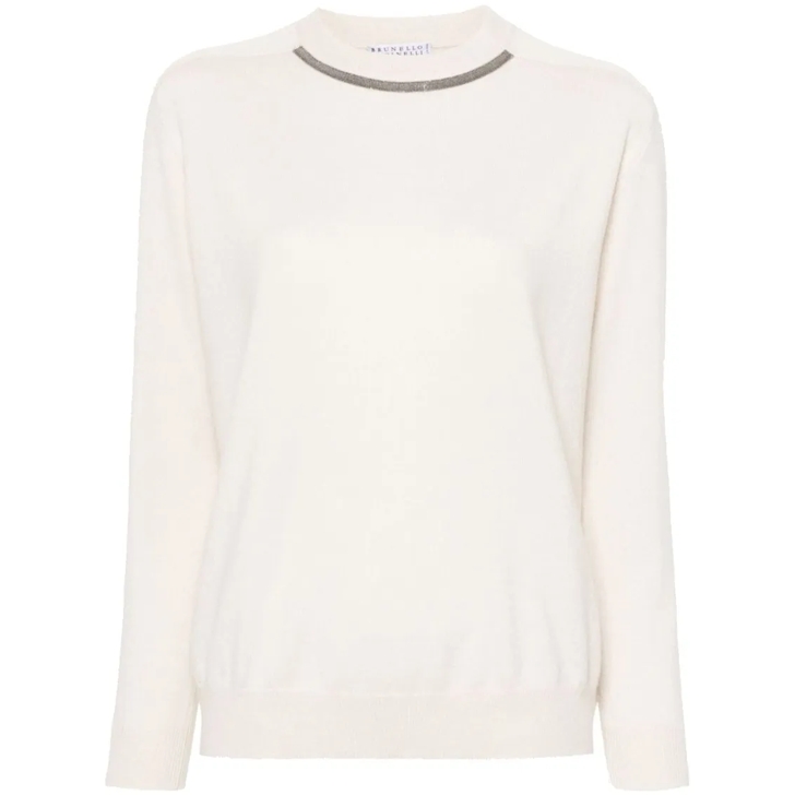 Brunello Cucinelli Cashmere Crew Neck Sweater White Pullover Very well made.