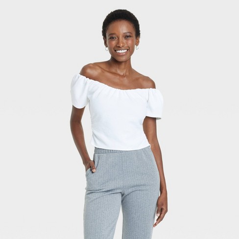 Women s Slim Fit Off The Shoulder Short Sleeve Top A New Day White M Target Very well made.