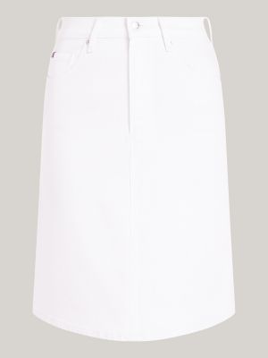 High Rise White Denim A Line Mini Skirt White Tommy Hilfiger Very well made.