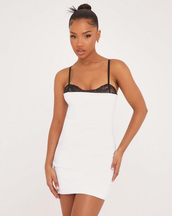 Strappy Contrast Lace Trim Mini Bodycon Dress In White EGO Very well made.