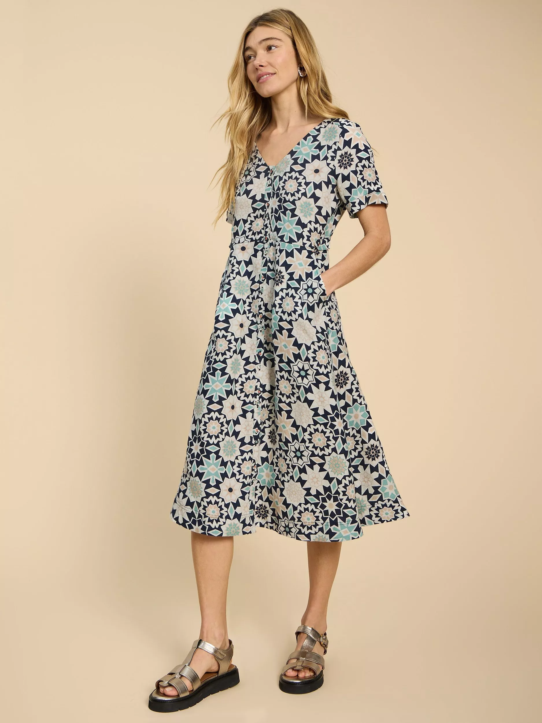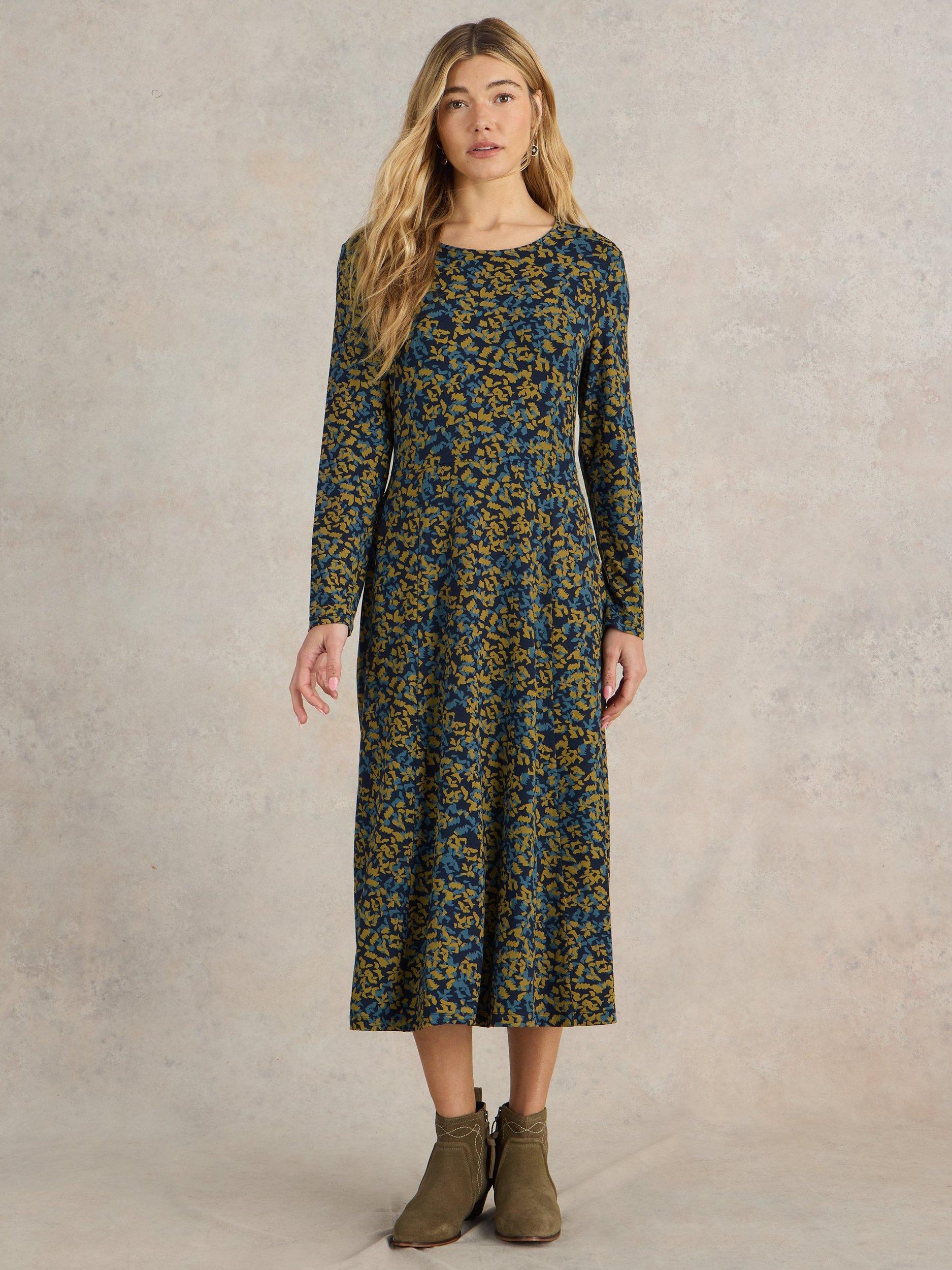 White Stuff Naya V Neck Jersey Midi Dress Green Multi Very well made.