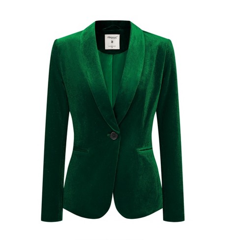 INSPIRE CHIC Women s Christmas Office Solid Shawl Collar Jetted Pockets One Button Velvet Blazer Green X Small Very well made.