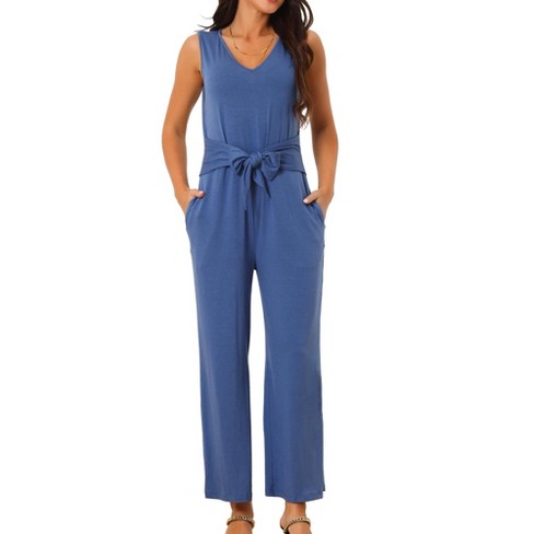 Seta T Women s Sleeveless Tie Waist Stretchy Long Pant Romper Jumpsuit Blue Large Very well made.