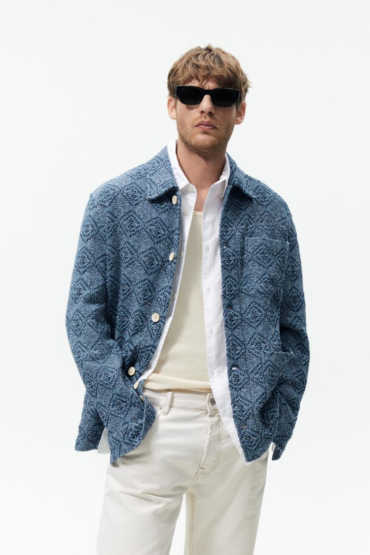 GEOMETRIC JACQUARD JACKET Indigo ZARA United States Very well made.