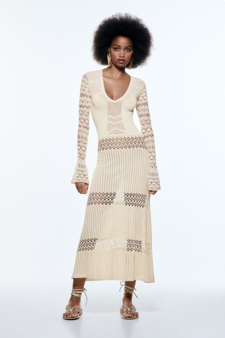 POINTELLE KNIT DRESS Ecru ZARA United States Very well made.