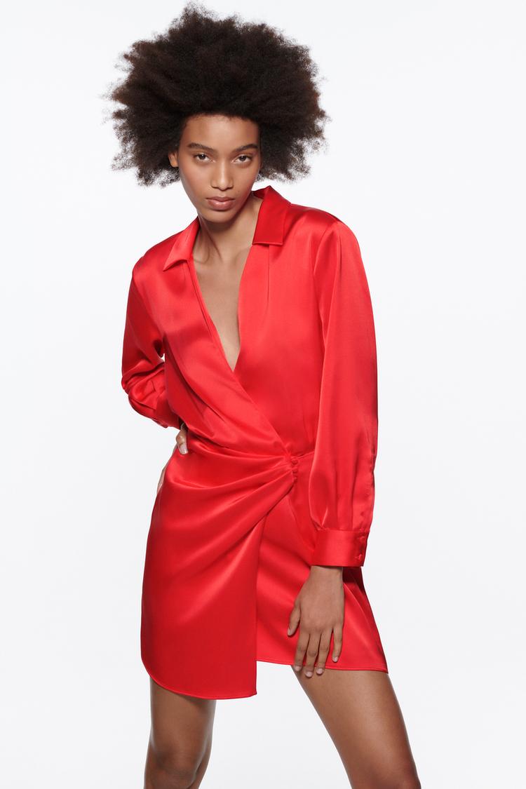 SATIN EFFECT WRAP DRESS Intense red ZARA United States Very well made.