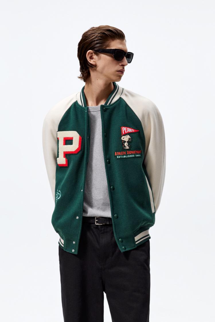 SNOOPY PEANUTS PATCH BOMBER JACKET Green ZARA United States Very well made.