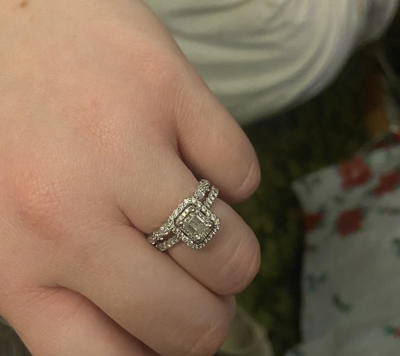 Vera Wang Love Collection 1 CT. T.W. Emerald Cut Diamond Double Frame Engagement Ring in 14K White Gold Zales Outlet Very well made.