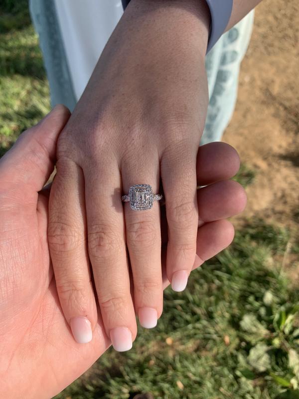 Vera Wang Love Collection 0.95 CT. T.W. Emerald Cut Diamond Double Frame Engagement Ring in 14K White Gold Very well made.