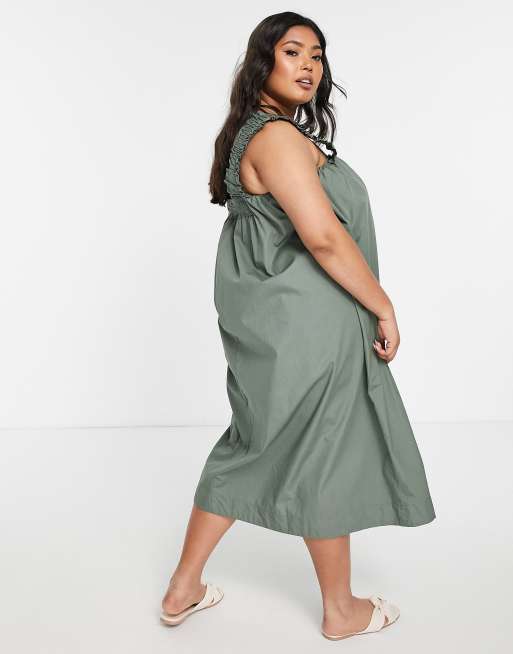 Vero Moda Curve cotton midi dress with ruched straps in khaki MGREEN ASOS Very well made.