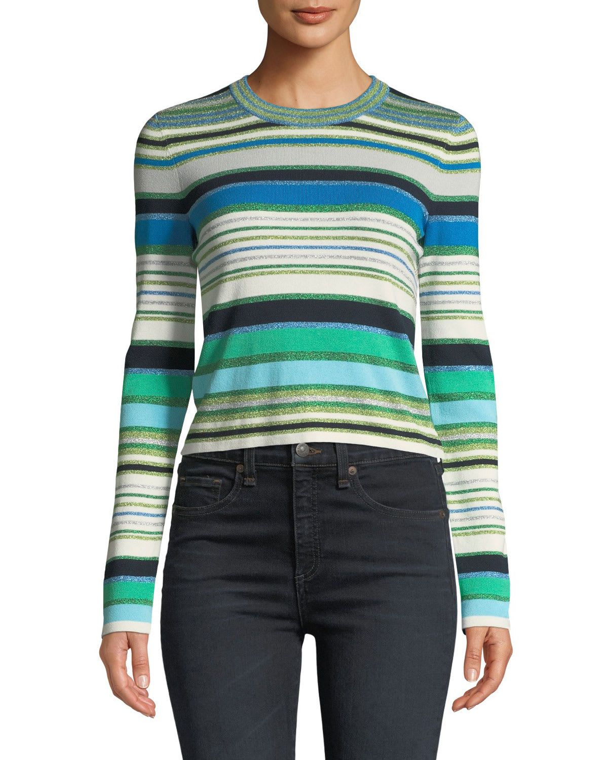 Veronica Beard Palma Striped Metallic Cropped Sweater Very well made.
