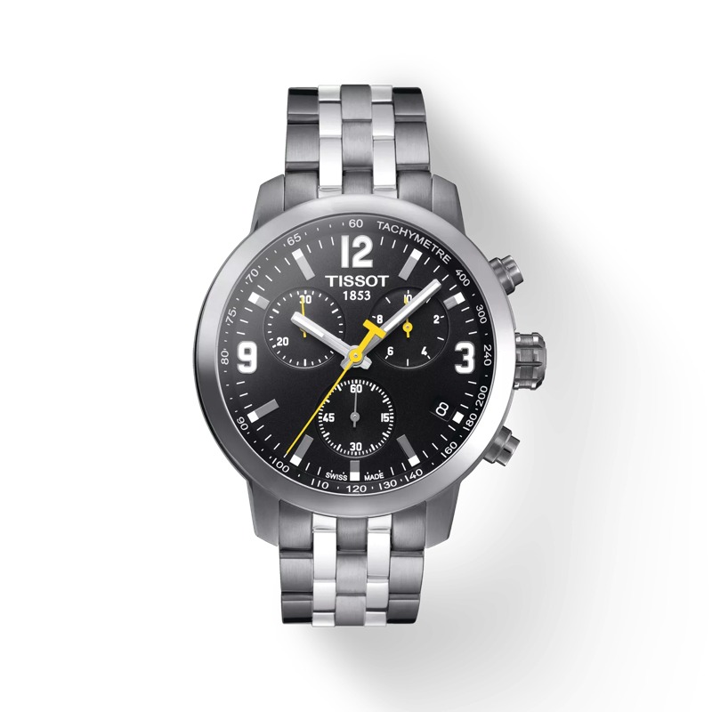 Tissot PRC 200 Chronograph Black Dial Silver Steel Strap Watch For Men Watch for Men Very well made.