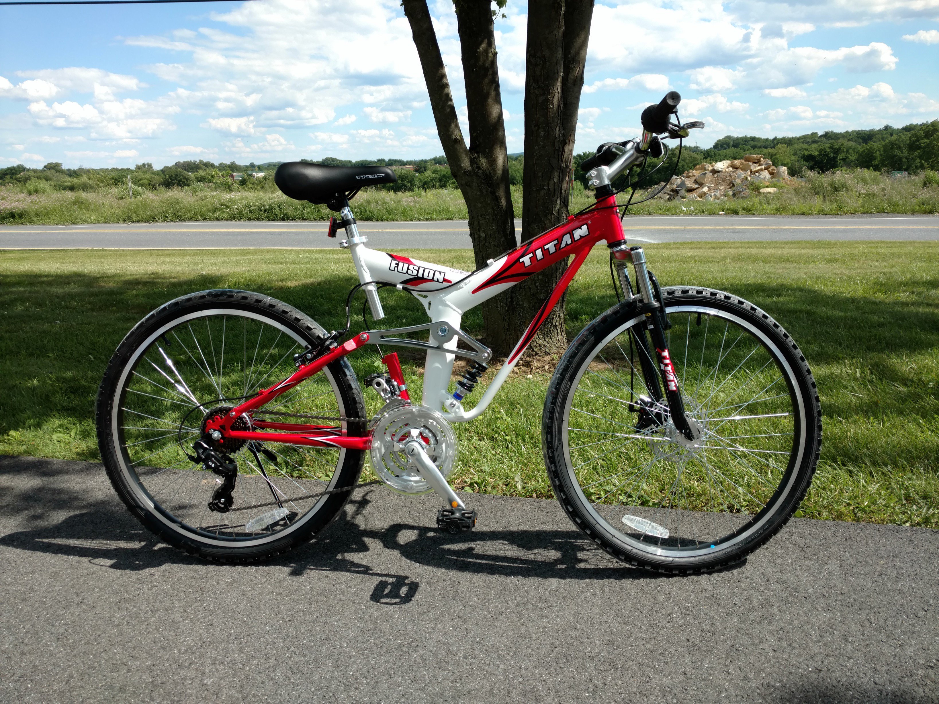 TITAN Fusion Dual Suspension Mountain Bicycle Blue and White Disc Brake Shimano Tourney Amazon Sports Outdoors Very well made.