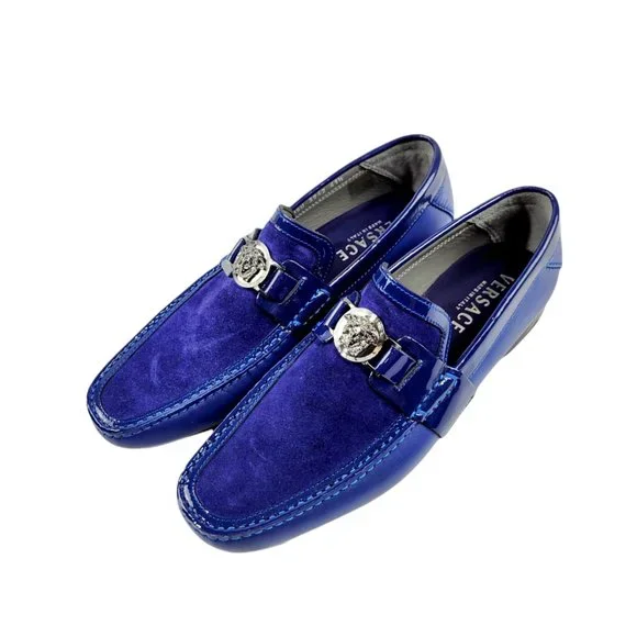 Versace Shoes New Versace Blue Suede And Leather Medusa Loafers Poshmark Very well made.