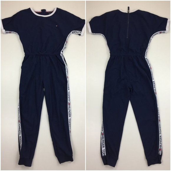 TOMMY HILFIGER Short Sleeve Logo Print Dark Blue White Red One Piece Jumpsuit Jumpsuits Rompers Very well made.
