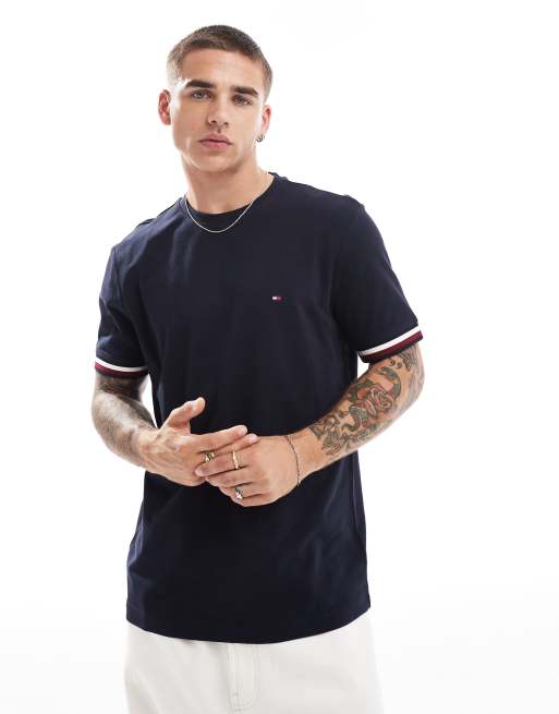 Tommy Hilfiger striped cuff T shirt in navy Very well made.