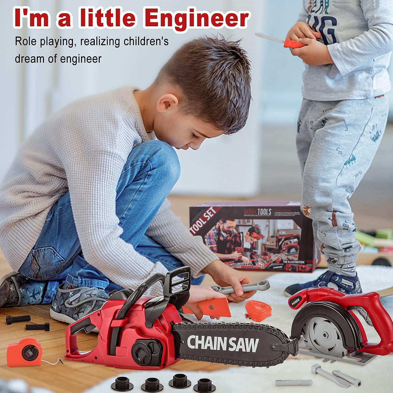 Mathea Toy Chainsaw for Kids Chainsaw Toys Pretend Play Series Kids Tool Set Kids Outdoor Electronic Power Tools Toys 36 PCS Toy Tool Sets for Toddlers Boys Girls 3 4 5 6 7 8 9 10 11 12 Years Old Very well made.