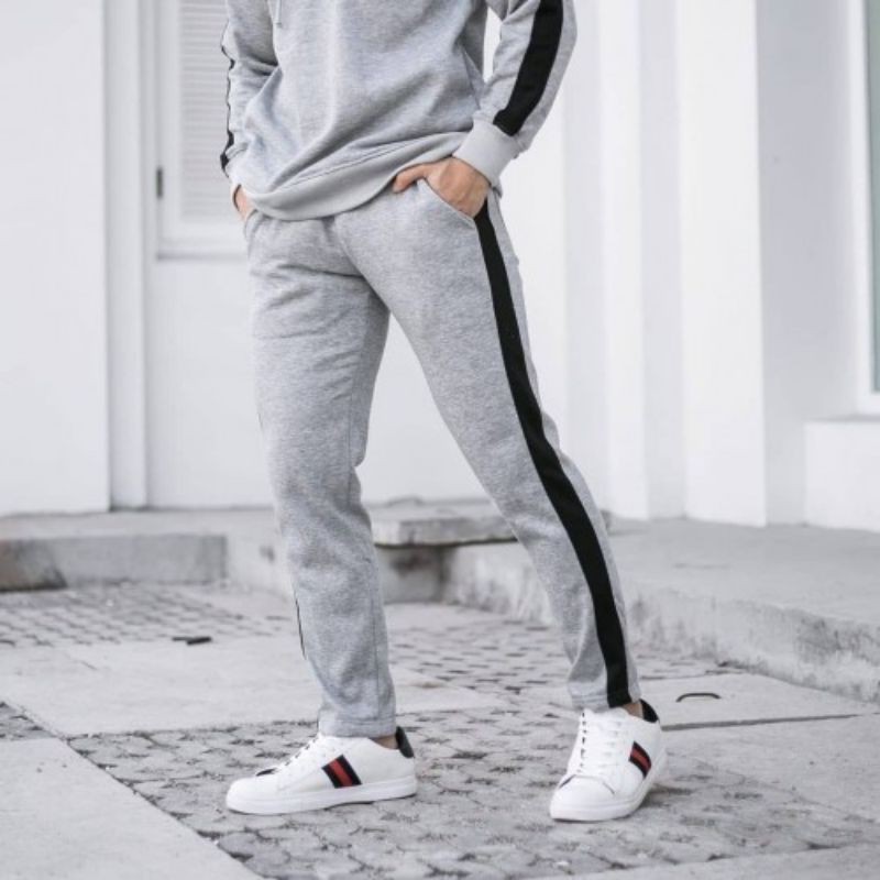 Pantalones largos para hombres y mujeres Joger Material grueso Jogger Trackpants gris claro lineas negras Shopee Mexico Very well made.