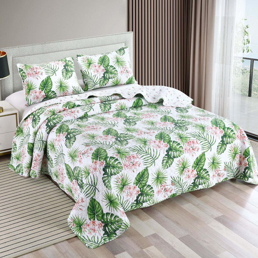 Tropical Whole Cloth Queen Quilt Set Cracker Barrel Very well made.