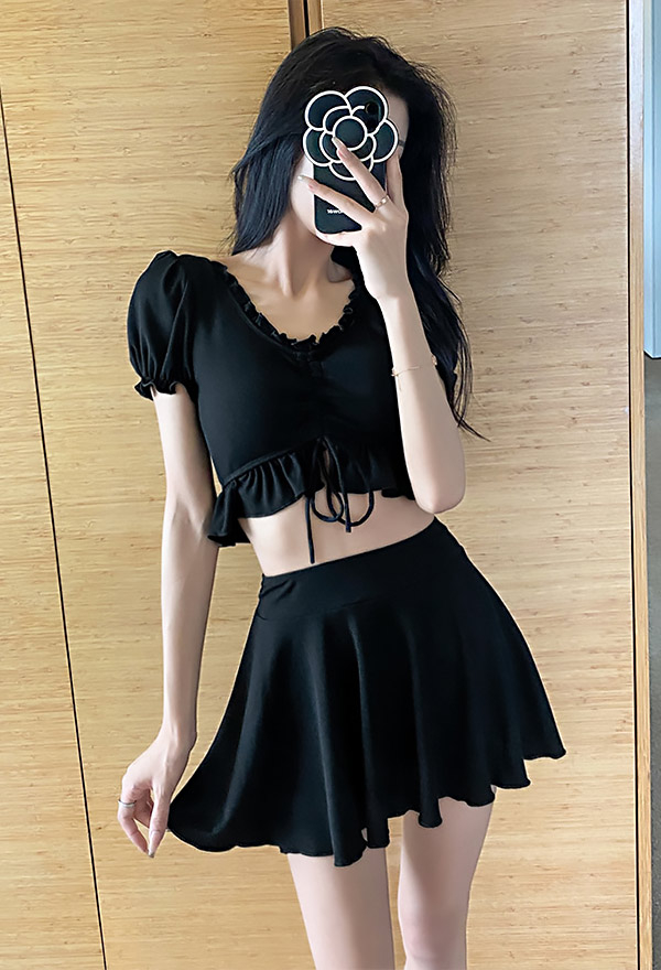 Women Gothic Swimsuit Ruffled Black Top and Skirt Set Bathing Suit Swimwear Two Piece Swimwear for Sale Very well made.