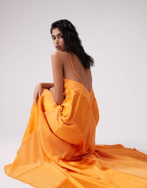 ASOS DESIGN Vestito lungo con spalline sottili in raso arancione con pannelli trasparenti ASOS Very well made.