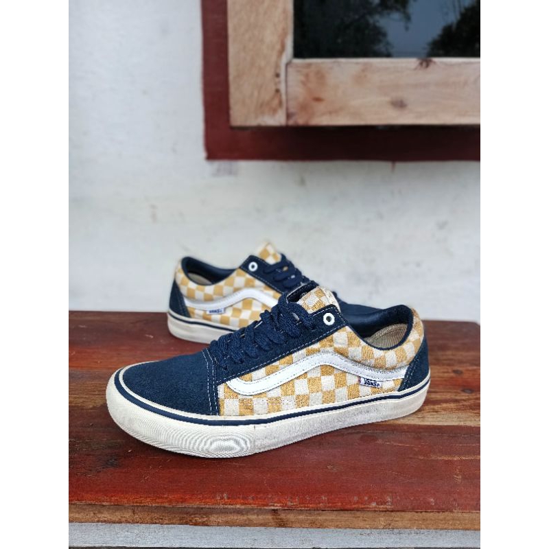 Vans Old Skool Pro Checkerboard Dress Blue Ochre Rockcity Skate Shoes Very well made.
