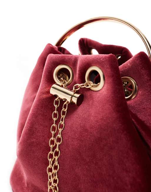 True Decadence velvet pouch bag with gold handle in burgundy Very well made.