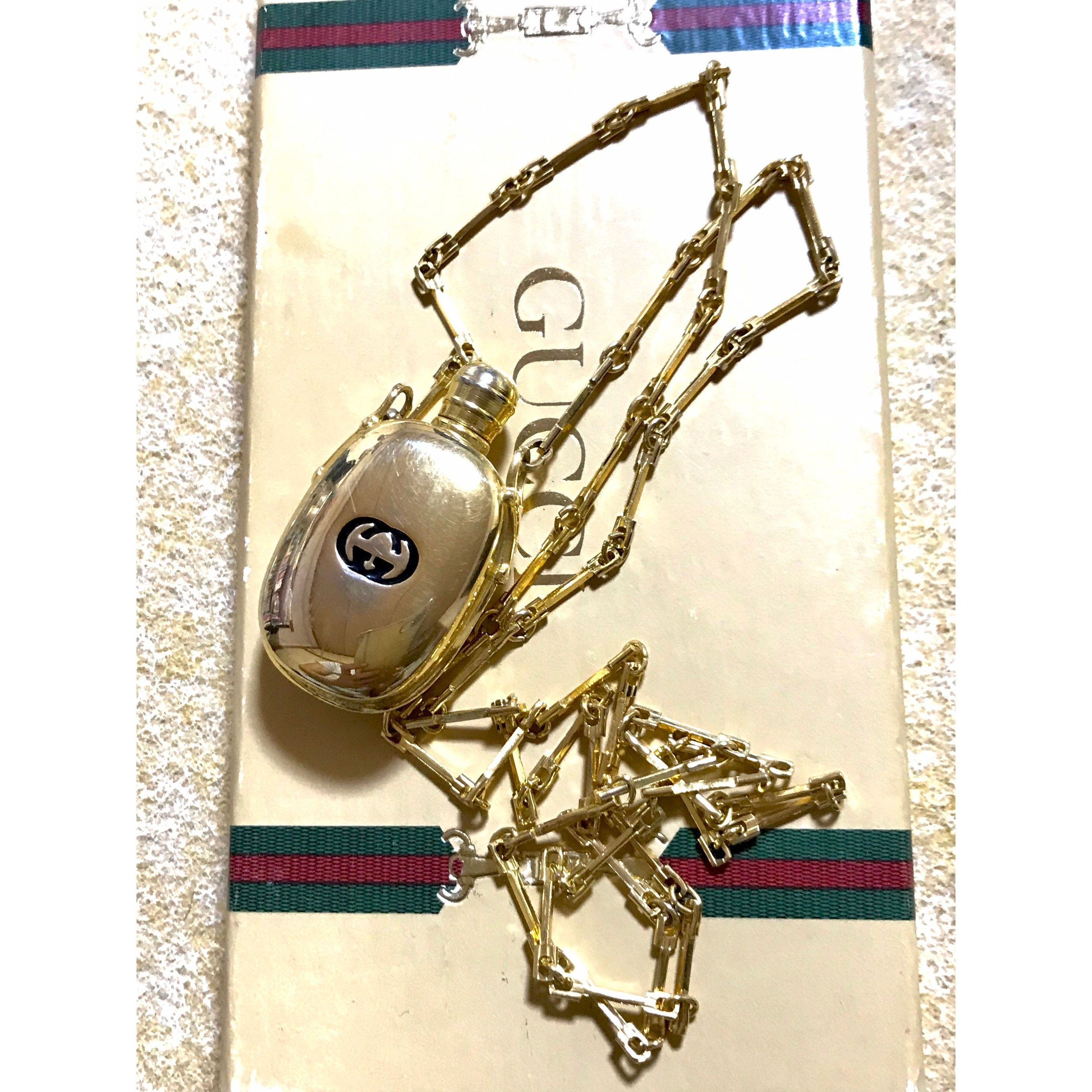 Gucci Vintage Gucci golden perfume bottle necklace with logo mark Grailed Very well made.
