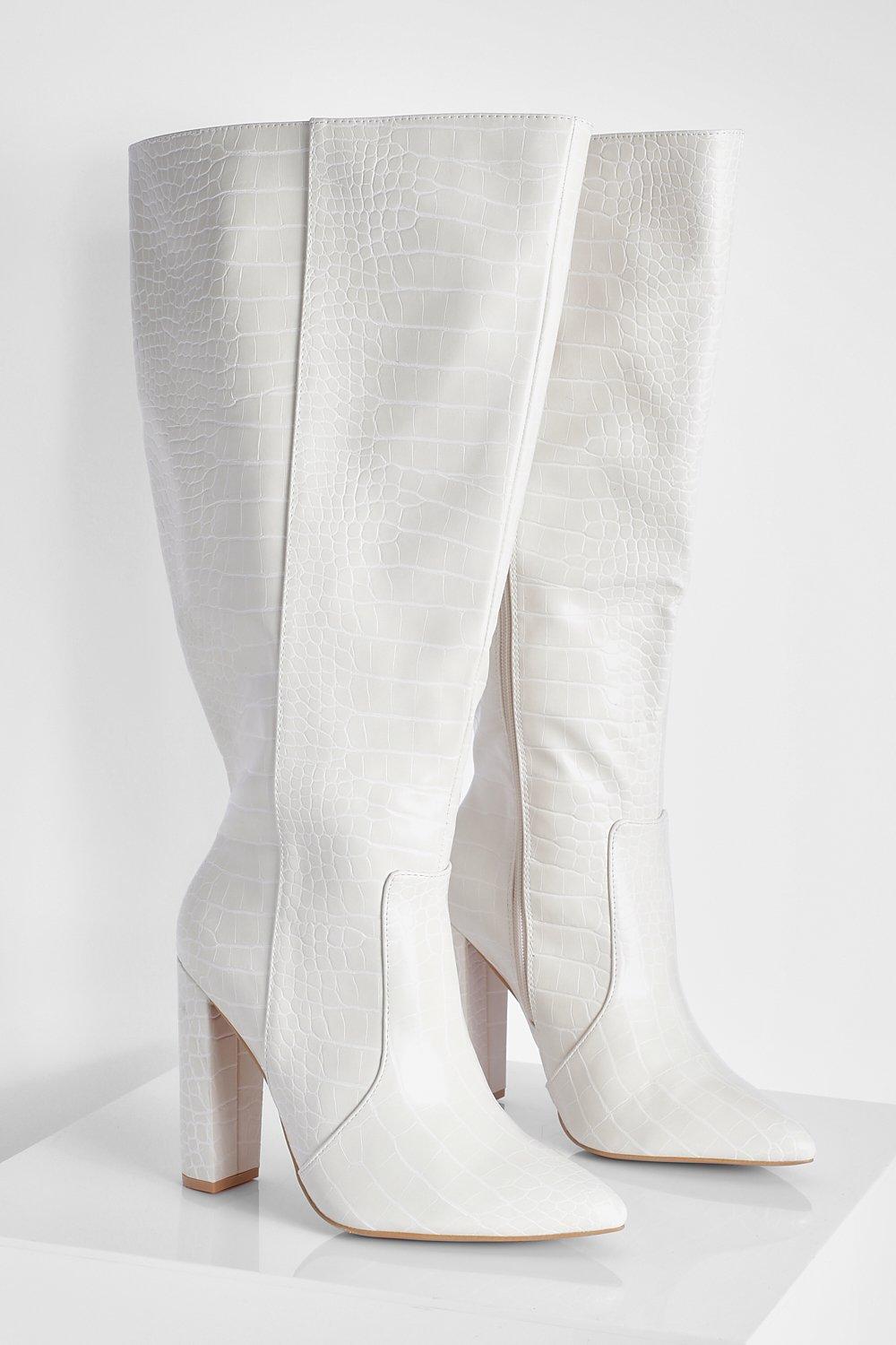 WIDE CALF Block Heel Retro Gogo White Matte Costume Knee Boots GOGO300WC W PU Very well made.